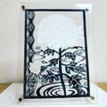 アクリルフレームに花札風の切り絵を封入しました。この作品は机に飾ることも壁掛けとして飾ることもできます。