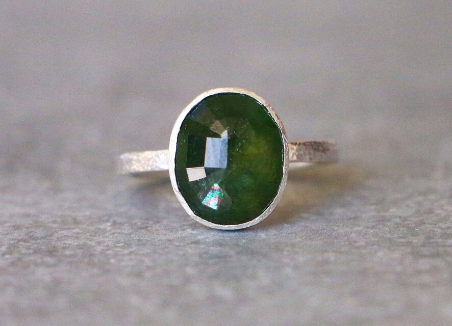 素材…トップは天然グリーンサファイア 指輪部分 スターリングシルバー925 手作り