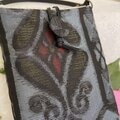 表の布は黒とグレーぽい色合いの藍大島の着物(シルク100%)の生地を使用しています。