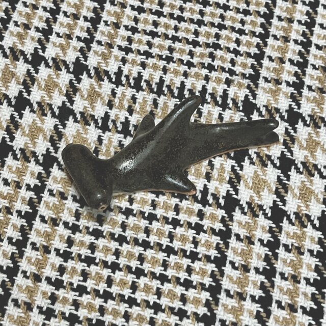 ハンマーヘッドシャーク:シュモクザメ型の箸置きです.黒っぽいマットの釉薬で「サメ肌」ぽくなっています.