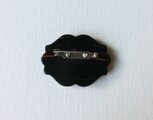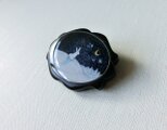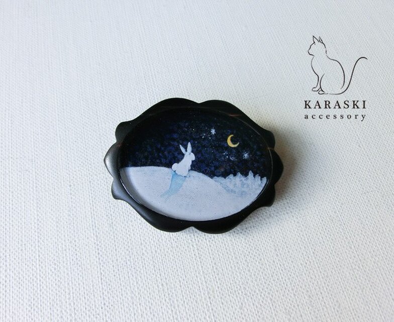 手描きの絵を樹脂で閉じ込めたブローチ。