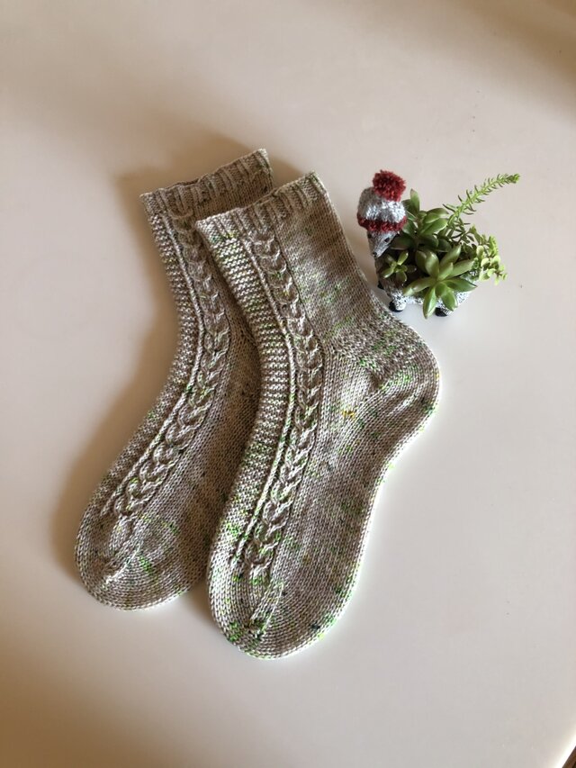 ちなみに竹串か?!ってくらい細い針で編んでるので意外と薄いです。普通の靴下と同じように履けますよ♪