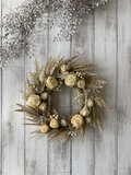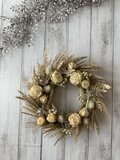 アイボリーのパンパグラスとドライ風ローズにクリスタルボールを添えて、グッと華やかでおしゃれなリースです。