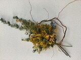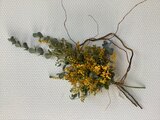 フレッシュな雲龍柳を緩く丸めて、そっとユーカリとミモザを添えて