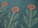 クロスステッチ花刺繍の文庫本ブックカバー 麻 グリーン