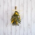 黄色く可愛らしいミモザに、小判草のドライを合わせたシンプルなスワッグです。