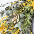グニーユーカリをベースに、黄色いミモザと小判草を合わせたシンプルなスワッグです。