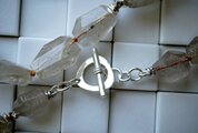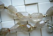 長さ16~23mm程度のルチルクオーツ(タンブルカット)をシルク糸で結びながらつなげていったネックレスです。