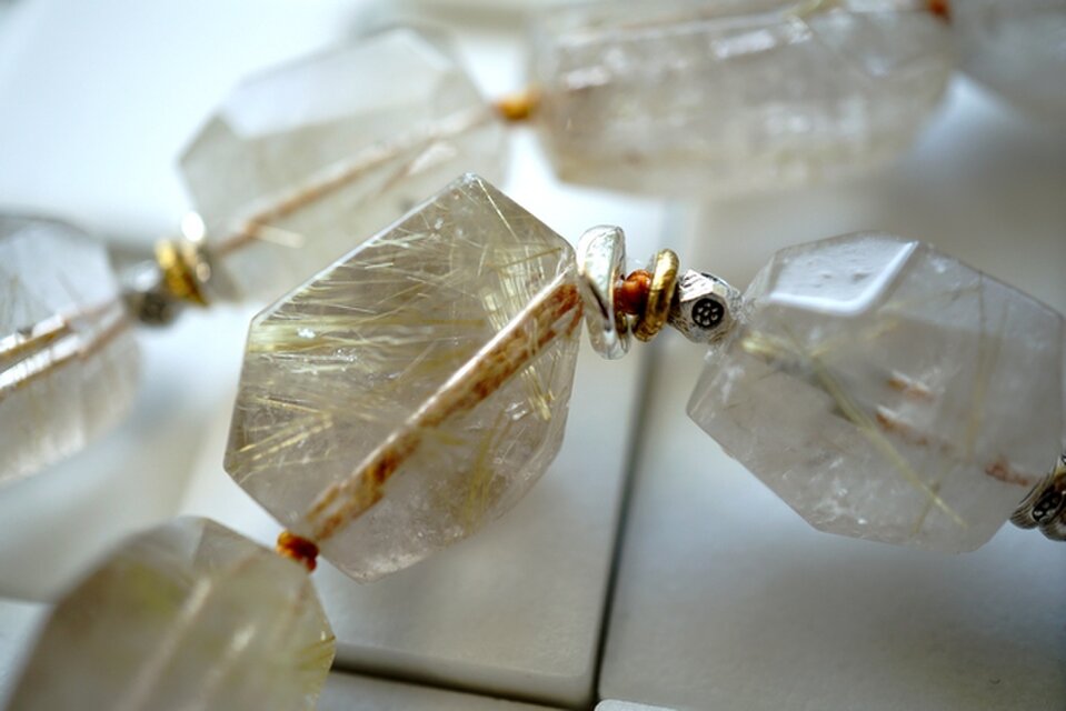 【素材】ルチルクオーツ・シルバー925ビーズ・ブラスビーズ・シルバー925留め金・グリフィン糸