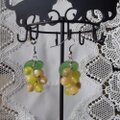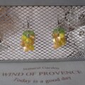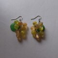 黄色のビーズを連ねてたわわに実った果実のような銀のピアスです。
