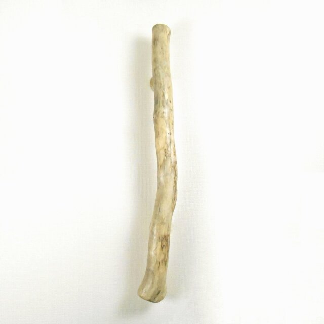 少し曲がった枝の流木、明るい木の色をベースに、木の色素や薄く残る木の皮が全体的に絶妙に混じり、美しい柄となっています。