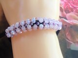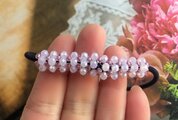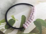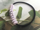 薄いピンク色の小さなガラスビーズがすずらんの花の様に可憐なヘアゴムです。