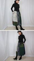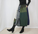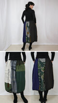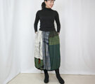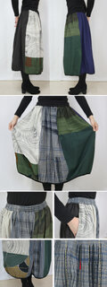 草木染め、手織り綿のパッチワークバルーンスカート、フリーサイズ