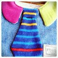 デニム風のダブルガーゼ生地に、カラフルな襟とボーダーのネクタイの組み合わせがカッコイイですよ♪