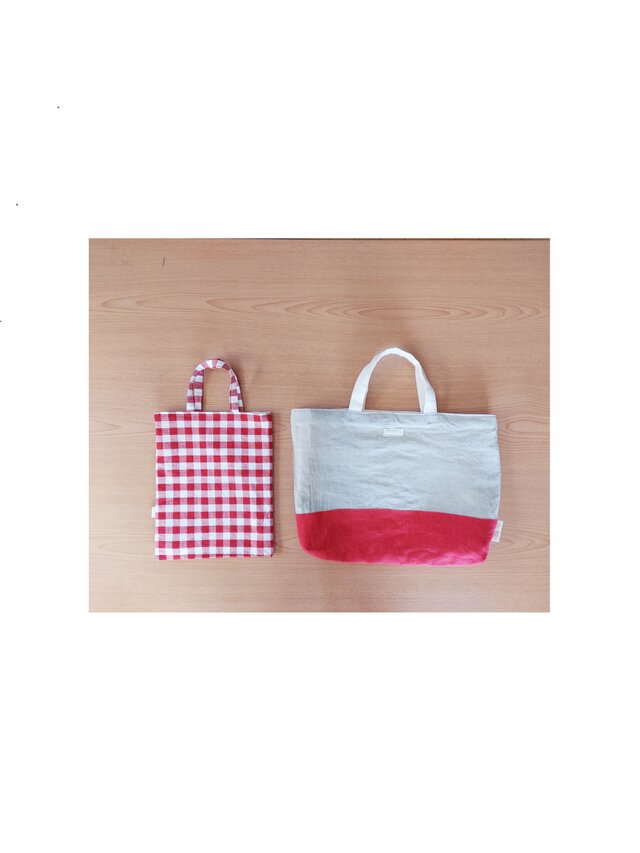 シンプルな手提げbagにかわいい手提げ袋がついた、2点セットになります。