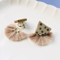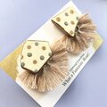 2ways 唐津焼 陶片 x 金継ぎ イヤリング (白陶片ドット、ベージュタッセル)