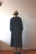 ラインはゆったりシルエットでもギャザーが入らないデザインなのできれいに下に落ちるIライン、首回りとお袖は緩やかなゴムが入っているのでさりげなくふんわり柔らか、すっきり着て頂けるラインとなっております。
