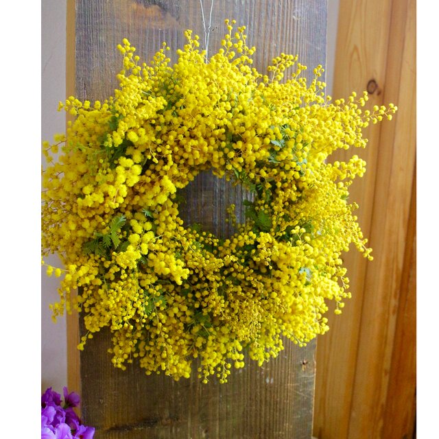 モフモフ感いっぱいの見ているだけで幸せになれそうなミモザリースです。