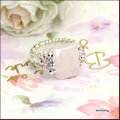 優しき乙女のお守りリング(天然石ローズクォーツスクエアカット/ジルコニア ビーズリング)《ビーズアクセサリー》