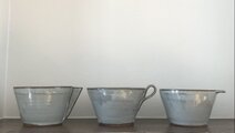 おふけ蓋もの器とても素敵な蓋ものですね。 釉薬のすっきりとした色も貫入のような模様もとても素敵です‼︎ 2つとも同じ釉薬でしょうか? 形こそ違うけどお揃いのようで嬉しくなりました。 ガラスの様にキラキラしてとても綺麗です。 大切に使わせていただきます。 ありがとうございました。