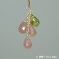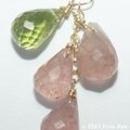 此方の下に、3個ピンクエピドートのドロップブリオレットカットを下げました。