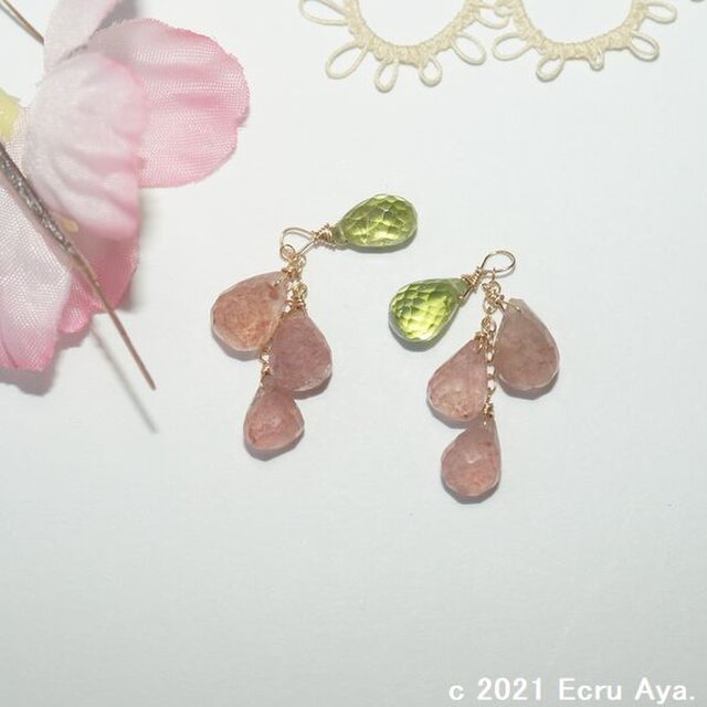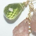 素材:宝石質ピンクエピドートAAA ドロップブリオレットカット、宝石質ペリドットAAA ドロップブリオレットカット、その他全て14kgf