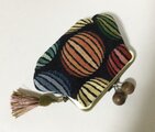 ヨーロッパ輸入生地 バルーン柄で作りました木玉親子がま口ミニ財布です