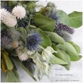アルビフローラ、エレンジュウム、トリフォリウムのルペンス、千日紅、フランネルフラワー、笹葉のアカシア、ユーカリポプラスリーフをたっぷり使いました!