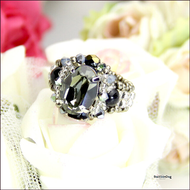 大人姫リングを透明度高いスワロフスキーのブラックダイアモンドでお作りしました。