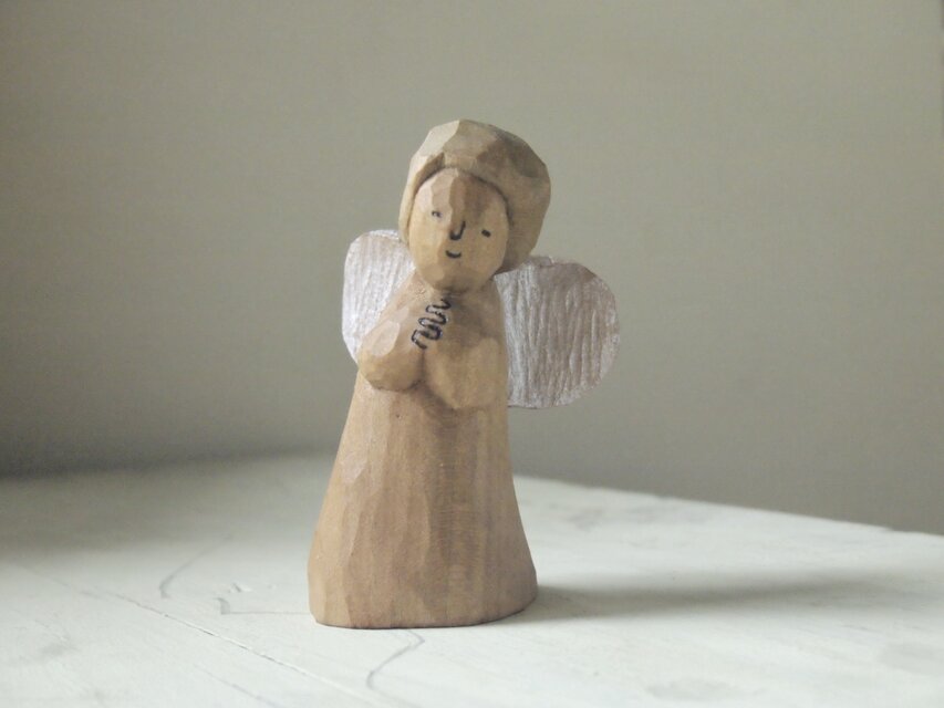 ヤマザクラの材を削って作り上げた天使です。高さ6センチ程。