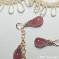 上から3個のピンクトルマリン、その下にはブルーがかったグリーンのトルマリン、一番下は淡いグリーンのトルマリンを下げています。