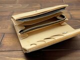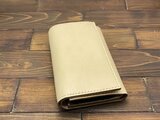 手縫いで作っているかぶせタイプのミドルウォレットです。