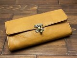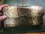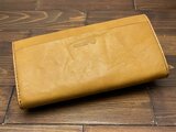 すべて手縫いで作っているかぶせタイプの婦人向けの長財布です。