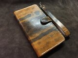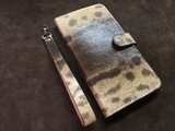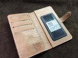 すべて手縫いで作った他機種対応の手帳型タイプのスマートフォンケースです。