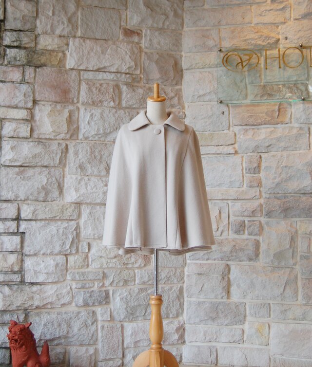 【 エレガント ケープ コート 】ダスティエクリュ ステンカラー 背ヨーク付き♪