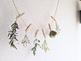 ハーブ畑でのびのびと育てたハーブやお花は、収穫してすぐにハンギング乾燥させています。タイムラグをできるだけ短くすることで、キレイさを保ったままレトロにドライされます。また自家製で無農薬にすることで畑環境を自然に近い状態にし、コストを押さえられるところは押さえ、できるだけお気軽にお迎えしていただきたいと思い、育て、制作しております。
