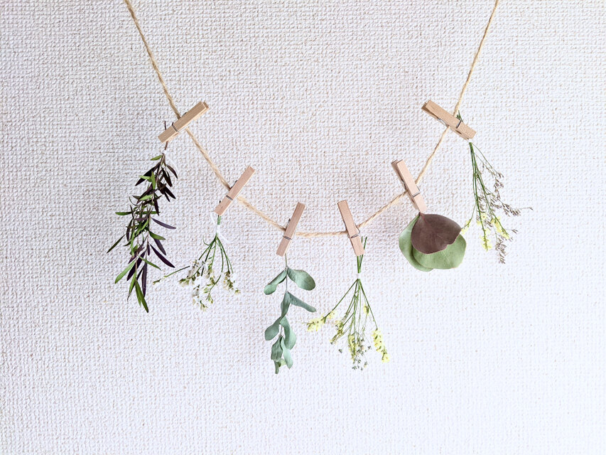 お部屋にグリーンを☆スターチスとユーカリ、シルバーツリーの小さなドライフラワー・ガーランド