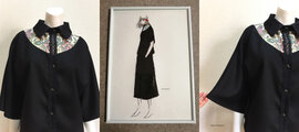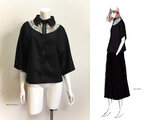 素敵なブラウスが届きました。首元の黒いトリミングがとても効いていると思います。デザイン画のように黒いロングスカートと合わせて、足元はパンプスで気合を入れて。動きやすいのもいいですね。ありがとうございました。