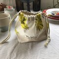 すこしだけ。。何かを入れるのに便利なサイズの巾着袋つくりました。