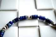直径4.5mm前後の臼型ラピスラズリをシルク糸でつないでいったブレスレットです。