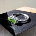 ペリドットらしい爽やかなグリーンを、控えめな装飾でシンプルに仕立ててあります。