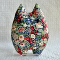 リバティー生地☆紺の花柄の猫のぬいぐるみ「ふにゃ〜た」