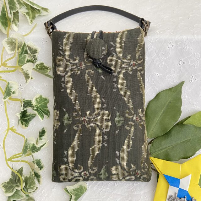 大島の着物(正絹)をリメイクしたスマホポーチ です。