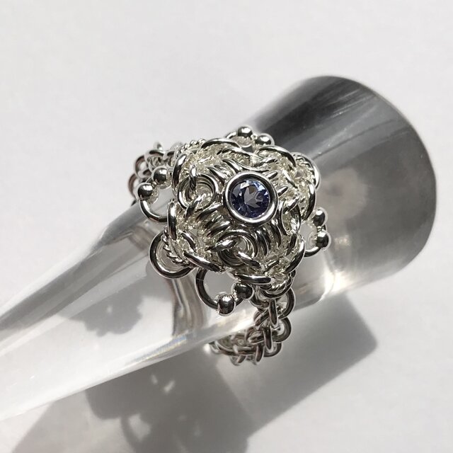 ~SV925タンザナイトフラワーモチーフチェーンリング~