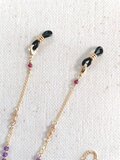 天然石のメガネチェーン(アメジスト×ガーネット×ルチル×キラキラオーバル)