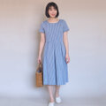 【XS-LL受注制作】アーミッシュ風シンプルワンピース◇ギンガムチェック・ブルー(サッカー調コットン混)*清涼・ストレッチ素材*