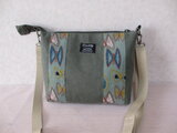 リネンのモスグリーンとミナペルホネンのskyflowerを部分使いしたショルダーを作製しました。