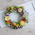 プリザーブドフラワーとアーティフィシャルフラワーがミックスしたリースです。