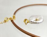 素材:淡水真珠、SV(金メッキ)、レザーチョーカー(40+5cm)