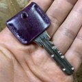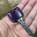 ルガトショルダーの紫で作ったキーカバーです。